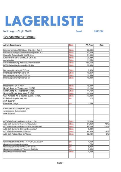 - Tiefbau (Kanal, Entwässerung, Betonprodukte, etc.)