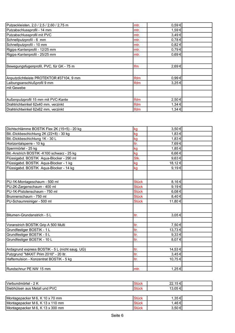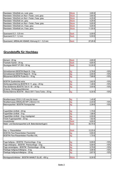 - Hochbau (Beton, Mauersteine, Decken, Dachstuhl, Dacheindeckungen, Mörtel, Pitze, Estrich, etc.)