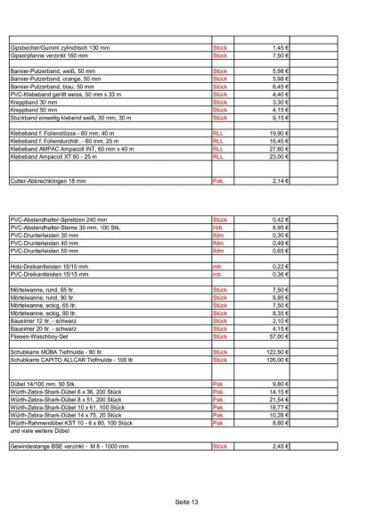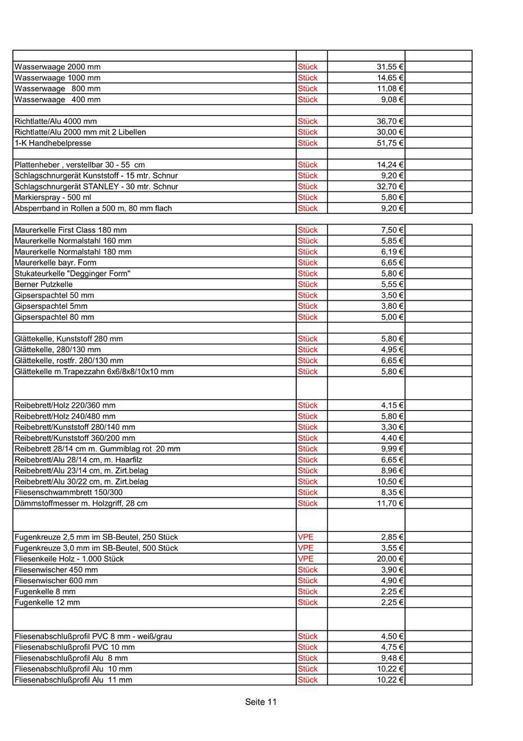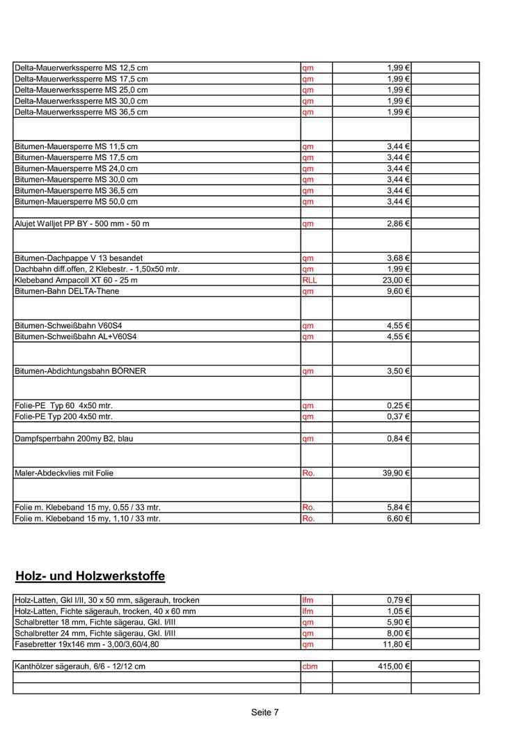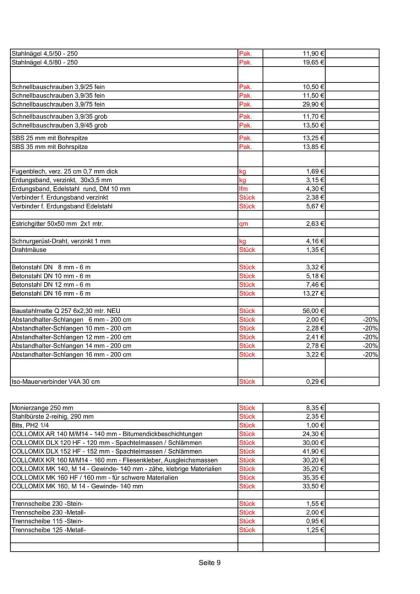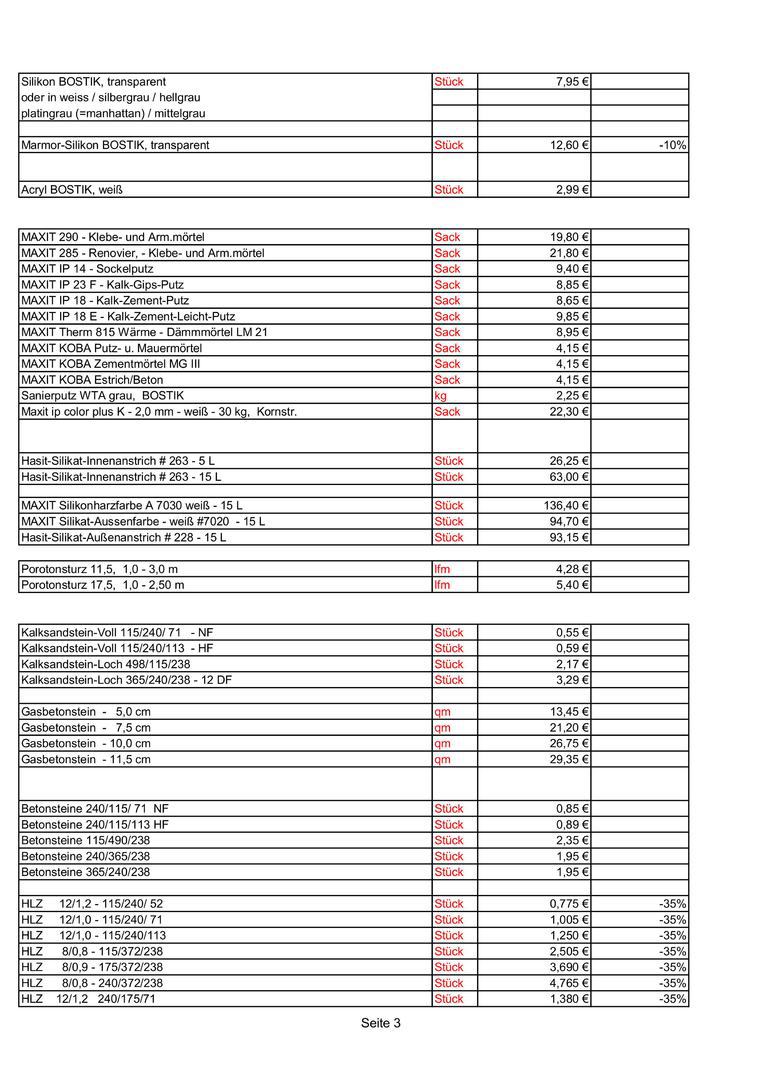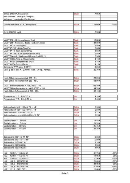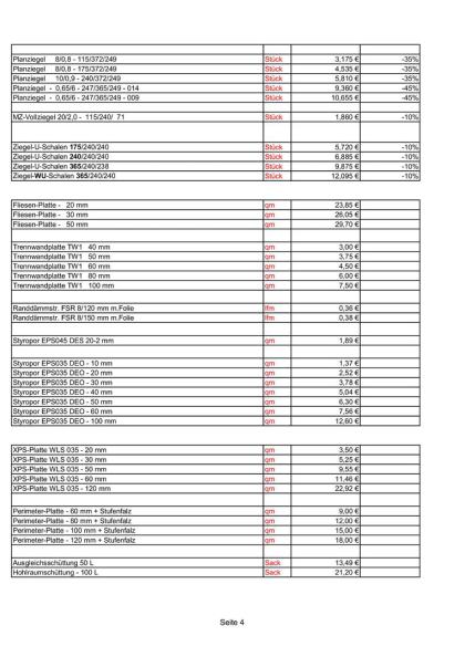 Preise nur gültig bis zur jeweiligen werksseitigen Preiseerhöhung !