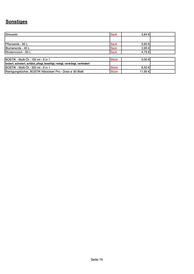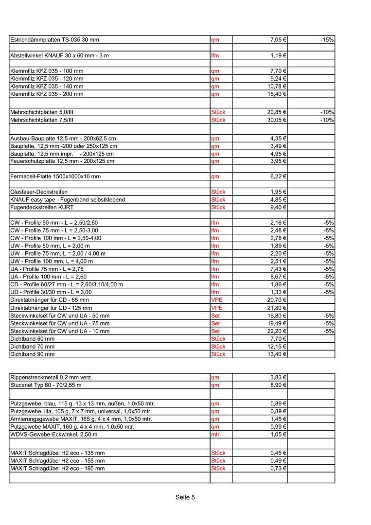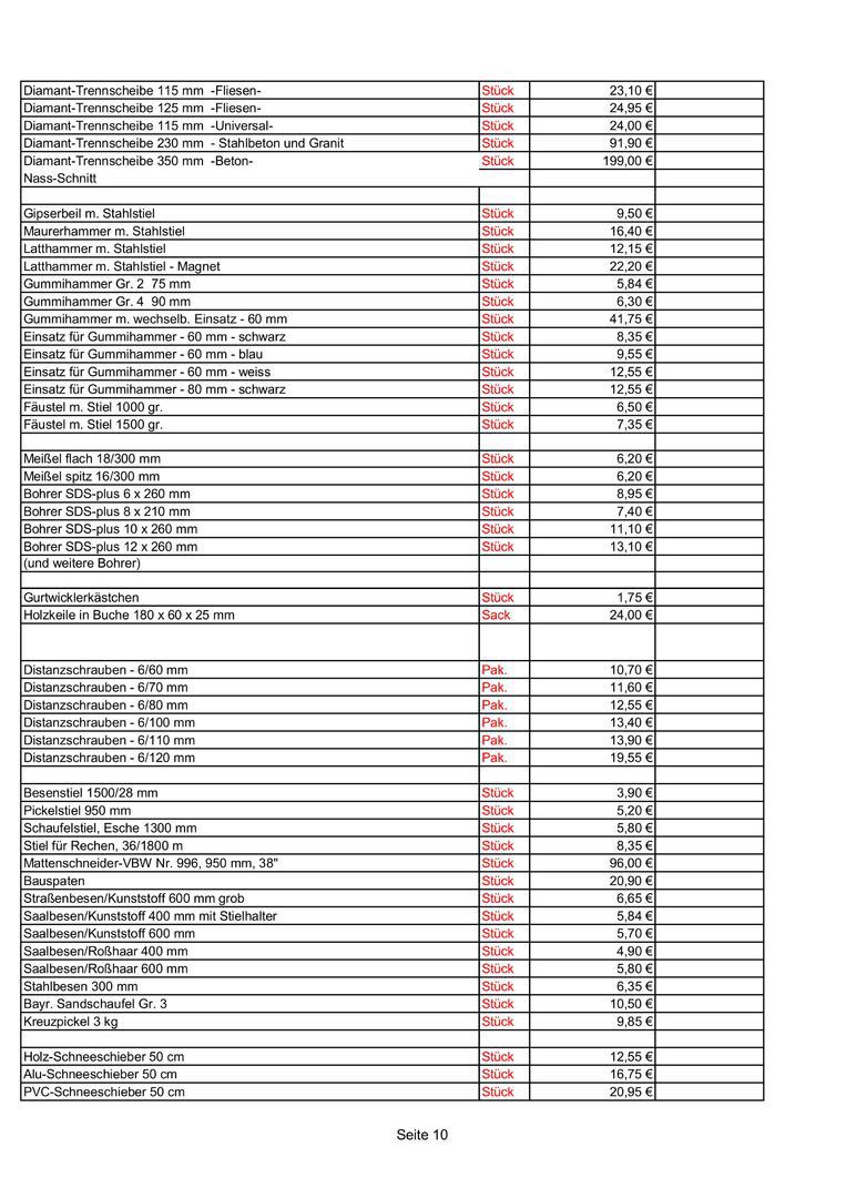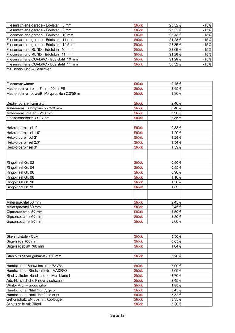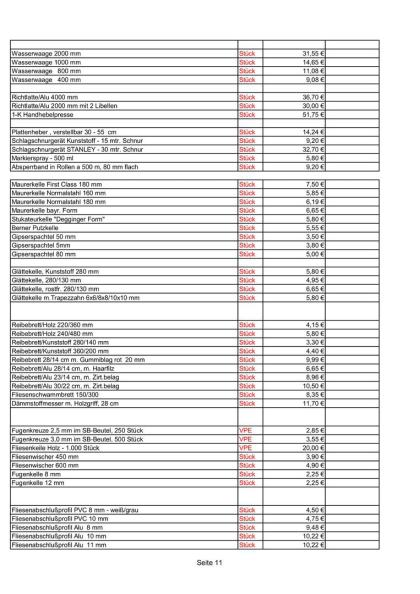 Preise nur gültig bis zur jeweiligen werksseitigen Preiseerhöhung !