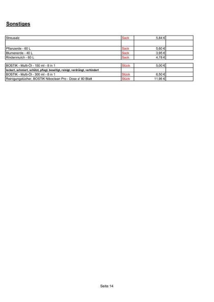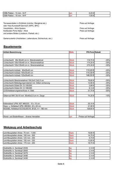 - Aussenanlagen (Zäune, Pflaster und Terrassenplatten, WPC, Terrassenbeläge, Müllboxen, Gartenprodukte, Spielanlagen, Gartenhäuser)